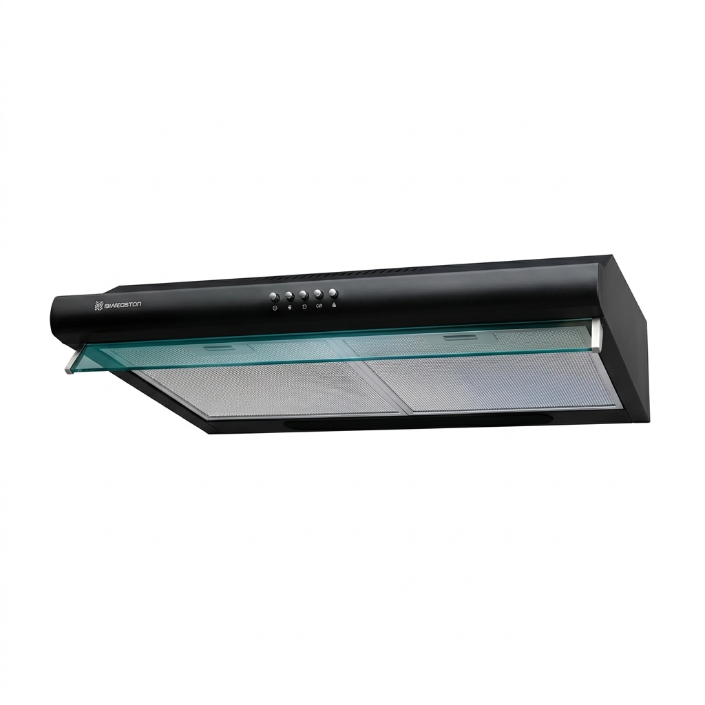 Potencia 112 Watts 1 motor de 110W con 3 velocidades Poder de succión de 250m3/h 1 lámpara LED de 2W cuerpo color negro Deflector de vidrio 2 filtros de aluminio de 5 capas (aptos para lavavajillas) Adaptable para instalación con o sin salida al exterior Incluye conector plástico para salida de aire