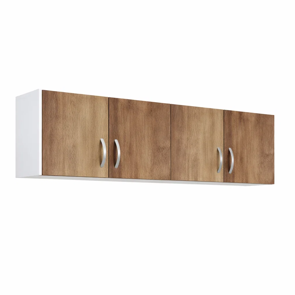 * Material de las correderas: metal. * Material de los tiradores: plástico. * Materiales de las puertas: melamina. * Dimensiones de la alacena: 46cm de alto, 140cm de ancho, 27cm de profundidad. * Cuenta con 4 puertas. * Requiere ensamblado. ULTIMA UNIDAD