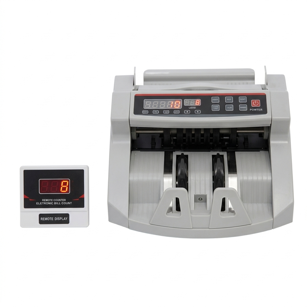 Especificaciones: * 900 billetes por minuto * Display LED * Detección automática con UV y magnético * Adecuado para la mayoría de los billetes del mundo * Funciones de dosificación, adición y autoexámen * Con pantalla externa