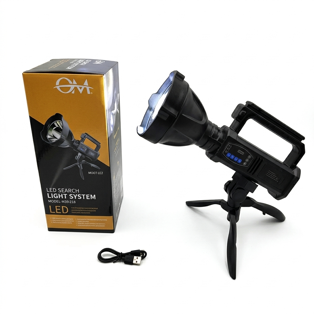 * Luz: LED con perlas P50 * Potencia: 10W / 1500 lúmenes * Modos de iluminación: Alta, moderada, baja, estroboscópica * Carga: Micro USB (incluye cable) * Autonomía: 4 a 6 horas * Tiempo de carga: 8 a 10 horas * Función powerbank: Sí, permite cargar dispositivos móviles * Batería: 3 x 18650 – 8000 mAh * Impermeabilidad: Apta para uso bajo lluvia * Material del cuerpo: ABS resistente * Incluye: Linterna, trípode desmontable * Manija ergonómica: Fácil y segura de usar * Pantalla indicadora de n…