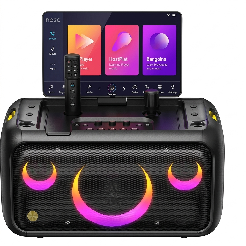PARLANTE CON PANTALLA DE 13 3 PULGADAS” * Altavoz de karaoke * Pantalla Táctil * Con 2 micrófonos inalámbricos recargables * Potencia máxima 800 W RMS Potencia 80 W+10 Wx2 * Tamaño de pantalla 13,3 pulgadas * Duración de la batería 12 Hs * Tiempo de reproducción del micrófono 30 Hs * Tiempo de carga del micrófono 5 Hs * Salida AUX 3,5 mm Entrada AUX 3,5 mm * Efecto de lámpara 5 * WiFi 2,4 G/5 * Sistema operativo Android