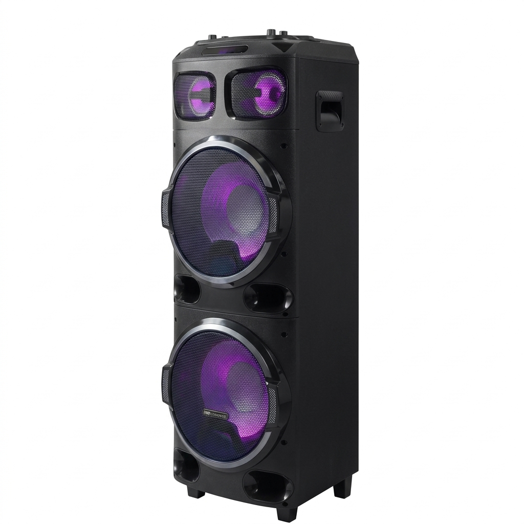 * Voltaje: 220V * Tipo de parlante: baflepotenciado. * Con conectividad bluetooth. * Tiene luces led. * Función de karaoke incorporada. * Distintos efectos de voz. * Potencia de 200W. * Dimensiones: 36cm de ancho, 112cm de alto y 33cm de profundidad.